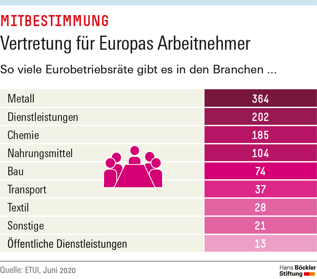 Das Europäische Gewerkschaftsinstitut (ETUI) bietet die Möglichkeit, die Namen von EBR-fähigen Unternehmen und die Inhalte von EBR-Vereinbarungen online zu recherchieren.